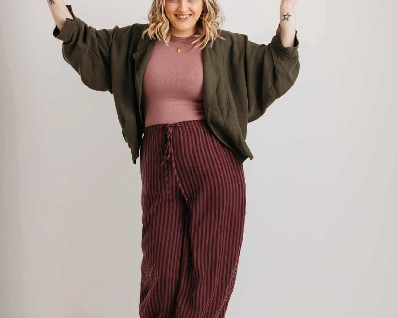 Crafted in the UK under ethical conditions, Stella is also thoughtfully designed to be breastfeeding-friendly. You can layer it over nursing pieces and maintain style and ease without feeling restricted.