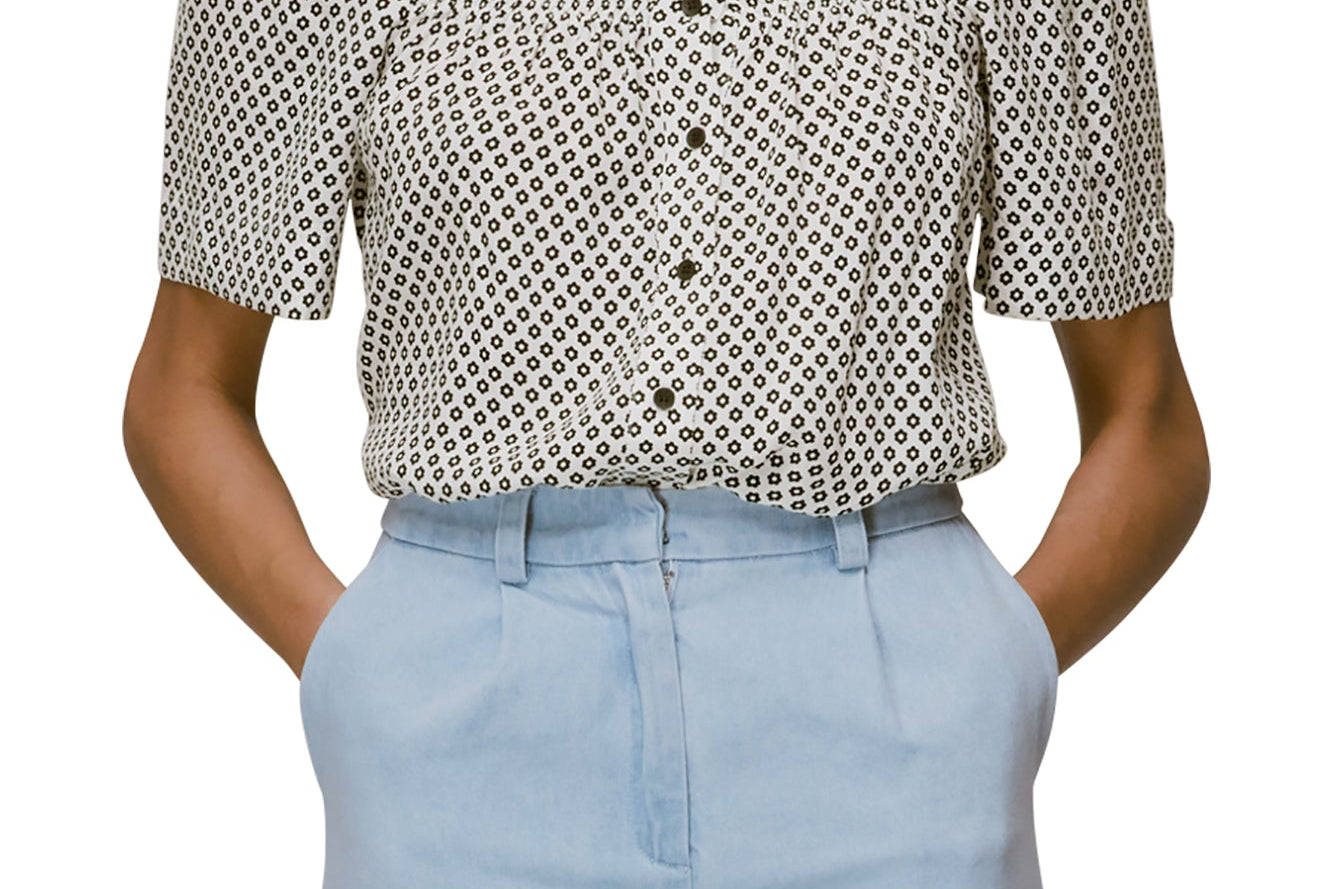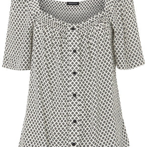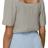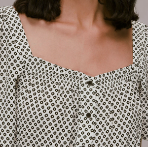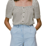 Designed with an elegant square neckline and soft daisy detailing, the Tia Blouse brings a romantic touch to warm-weather dressing. Cut for a flattering fit, it’s finished with a button front and short sleeves for an easy, everyday feel.