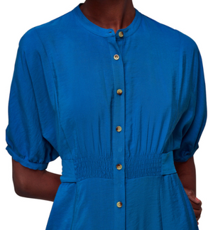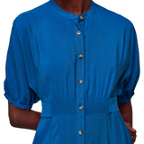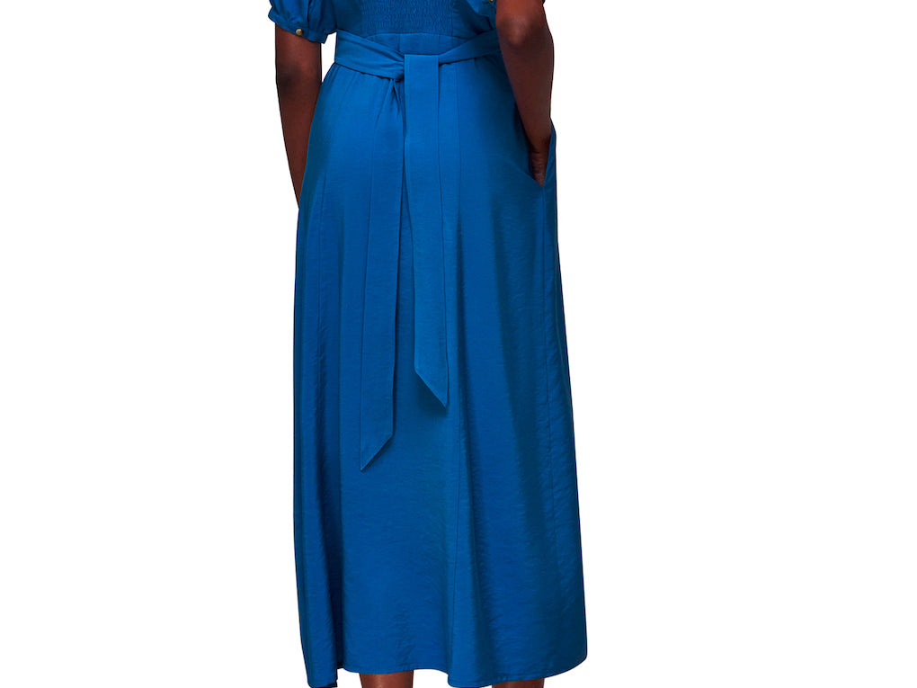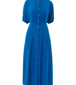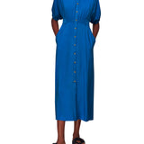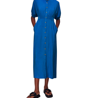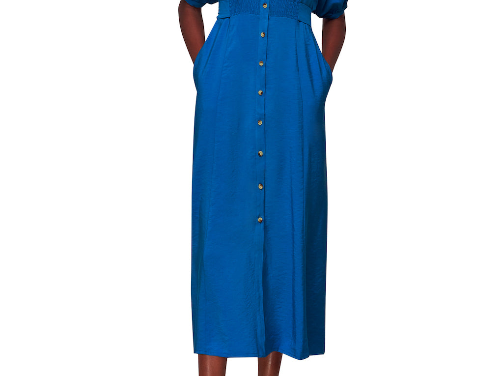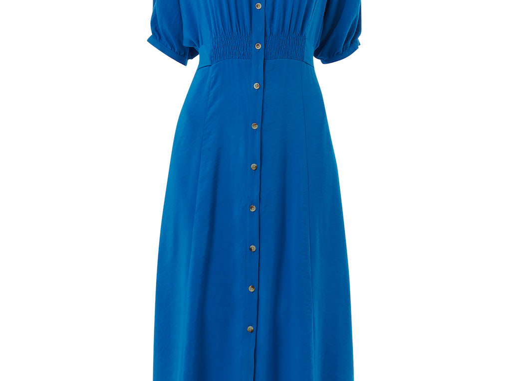 Amber Midi Dress is crafted from responsibly sourced viscose. The Amber dress boasts a relaxed fit that exudes an effortless air whilst the midi length adds elegance. Featuring a smocking detail at the waist and a button fastening, we love styling it with a pair of chunky boots and thick socks for cosy days, and silver jewellery for a day-to-night look.