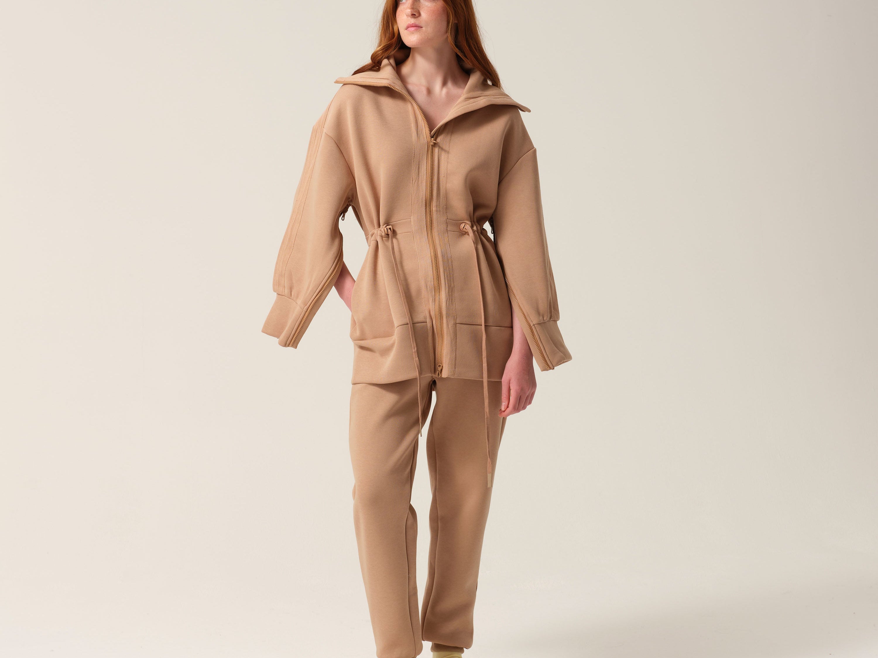 The Testing 1-2-3 Tracksuit is built for your trips to the hospital for scans and blood tests and post-birth recovery . It has zip-through arm access that keeps your body covered and your dignity intact.